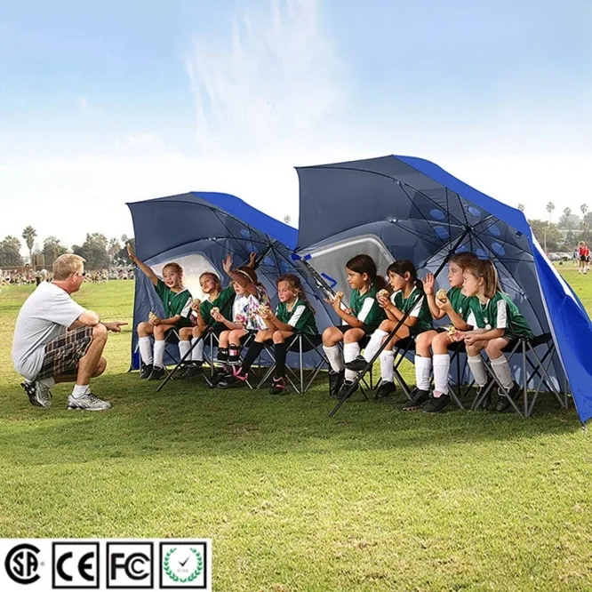 Vattenavvisande och väderskydd. Skydda dig mot regn, vind eller sol med sportbrella. Vattenavvisande strukturen kommer att hålla dig torr och avslappnad på regniga speldagar eller sval från den varma sommarsolen på stranden.