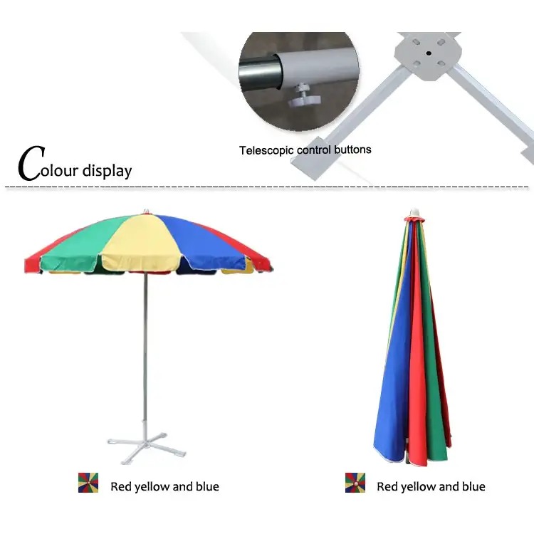 Parasoll för att förhindra direkt solljus på stranden i det stora parasoll. Beach Paraply design är baserad på uteplats paraply och evolution. Men nu med utvecklingen av en minimalistisk stil spridning och kommersiell fritid industrin, har använts i stor utsträckning för parasoller på stranden, vacker form, solskydd effekt effektiv, billiga utomhus kommersiella reklam syften är mer gynnsam för att främja sin tid. Strandparasollet är bekvämt att flytta, enkel installation, låg kostnad, kan vara fördelar med logotypmeddelande.